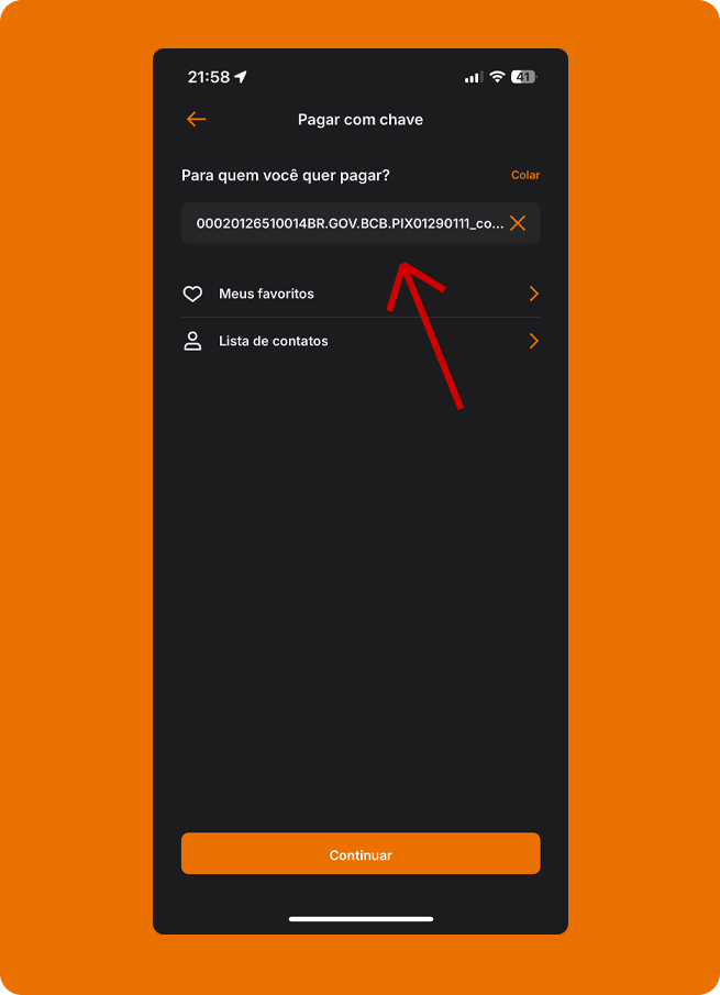 Cole o "Código PIX" e clique no "Botão de Seta" para avançar.